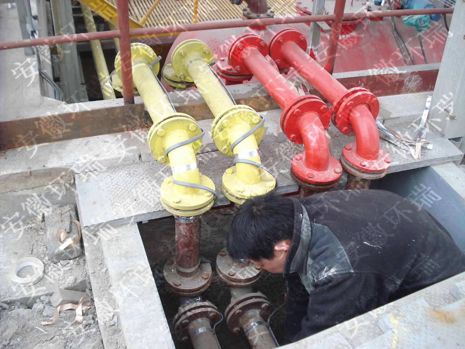 圖為某電廠管道露天環境下安裝內防爆型電伴熱帶施工現場