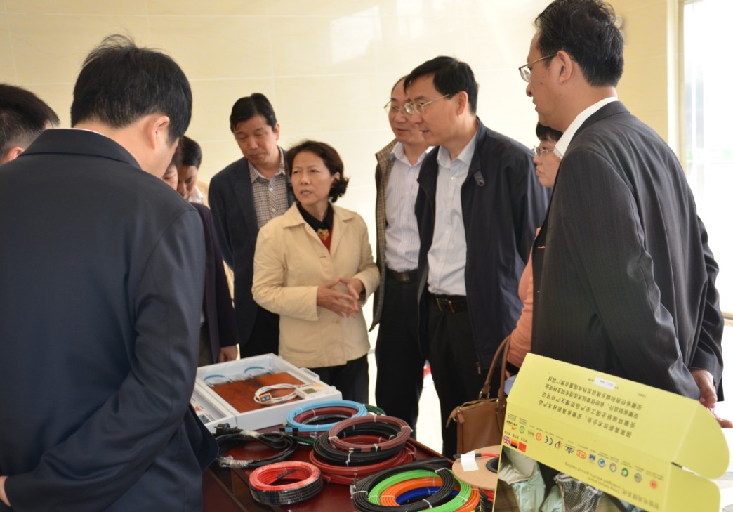計總向副市長吳建國介紹我司最新電熱帶,發熱電纜產品