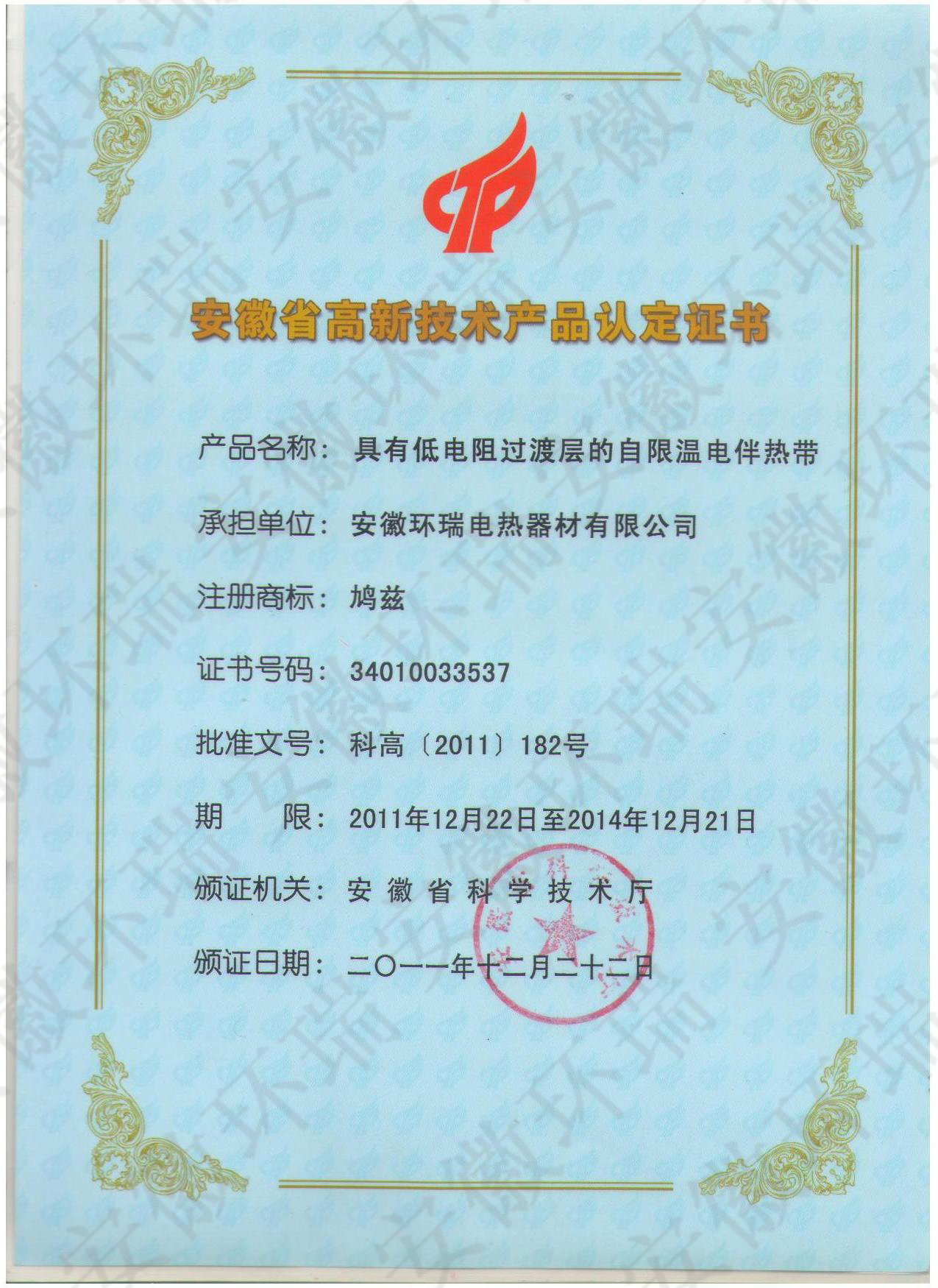 安徽環瑞電熱器材有限公司是國內專業從事電伴熱生產、研發及應用的高科技企業。公司生產基地坐落于安徽省合肥市肥東經濟開發區,公司始建于2004年,擁有國內外先進的生產及檢驗設備,企業規模居國內前列,生產基地嚴格按照ISO9001:2000質量體系運行,所有產品均采用國家標準設計、制造,并全部通過國家防爆鑒定中心防爆認證,獲得多項國家專利,業務范圍涉及:石油、電力、鋼鐵、化工、煤氣、冷凍、食品、建筑、消防、太陽能、電熱采暖、烘房、地熱栽培、車廂、海上石油平臺、西氣東輸等領域多行業。